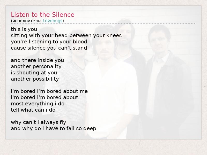 ГлавнаяИсполнителиLovebugsListen to the Silence