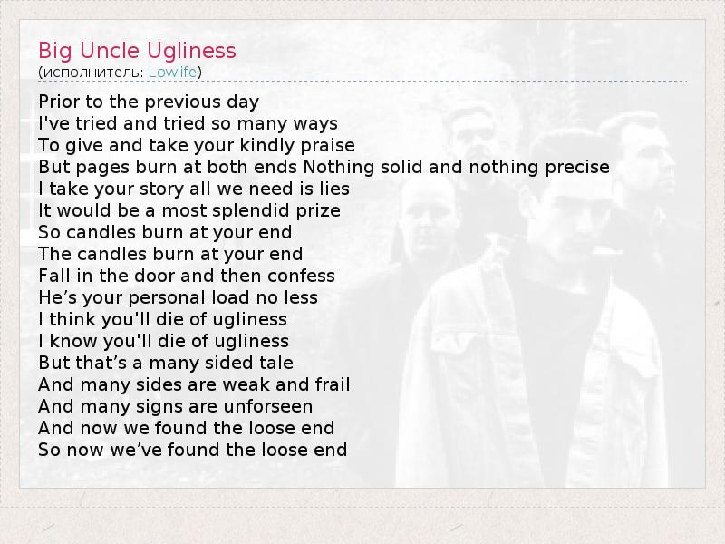 А как ты думаешь, о чем песня "Big Uncle Ugliness" ?