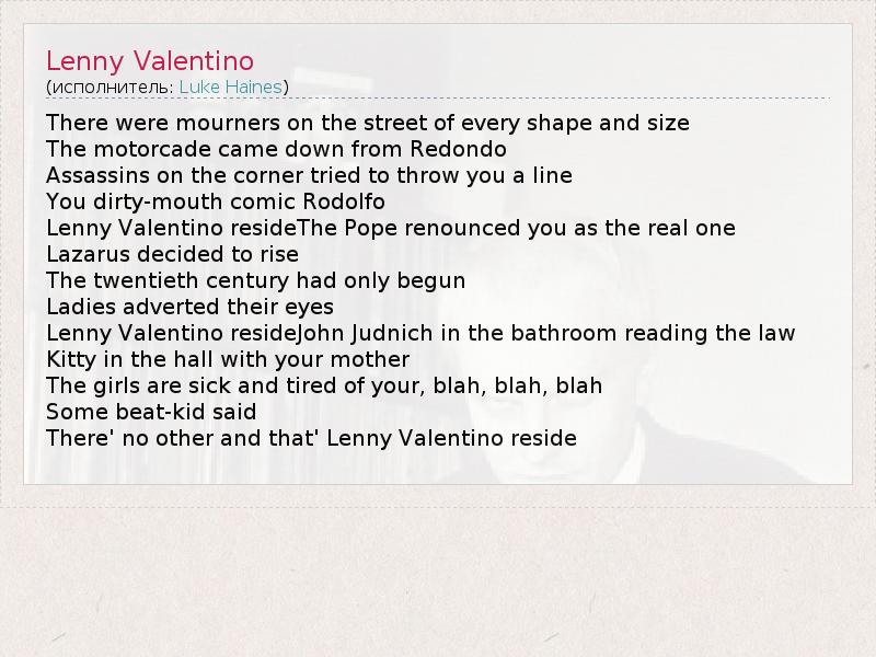 А как ты думаешь, о чем песня "Lenny Valentino" ?
