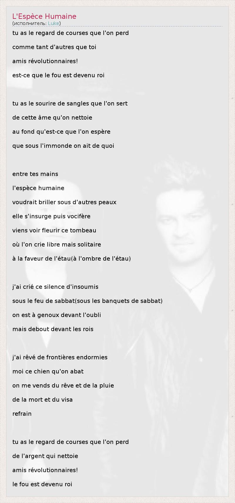 А как ты думаешь, о чем песня "L'Espèce Humaine" ?