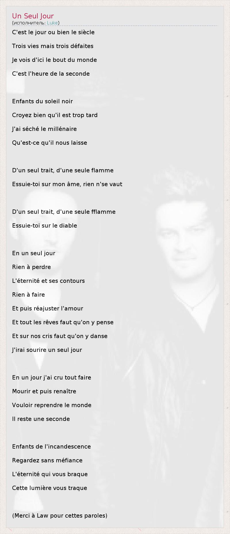 А как ты думаешь, о чем песня "Un Seul Jour" ?