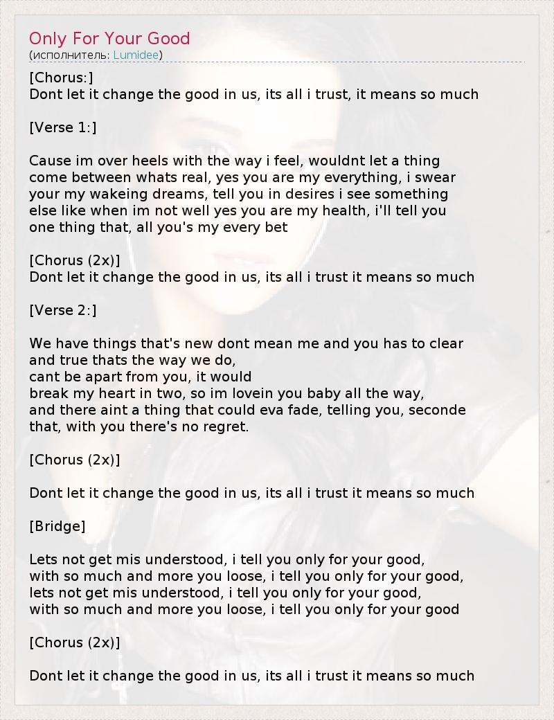 А как ты думаешь, о чем песня "Only For Your Good" ?