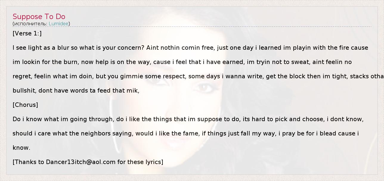 А как ты думаешь, о чем песня "Suppose To Do" ?