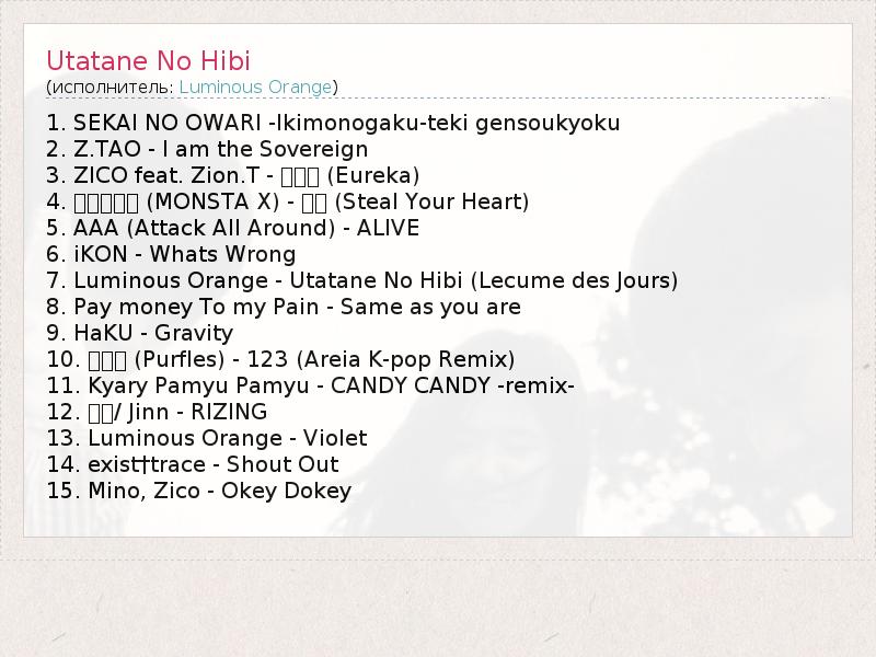 7. Световой Оранжевый - Utatane Нет Hibi ( Lecume де Jours )