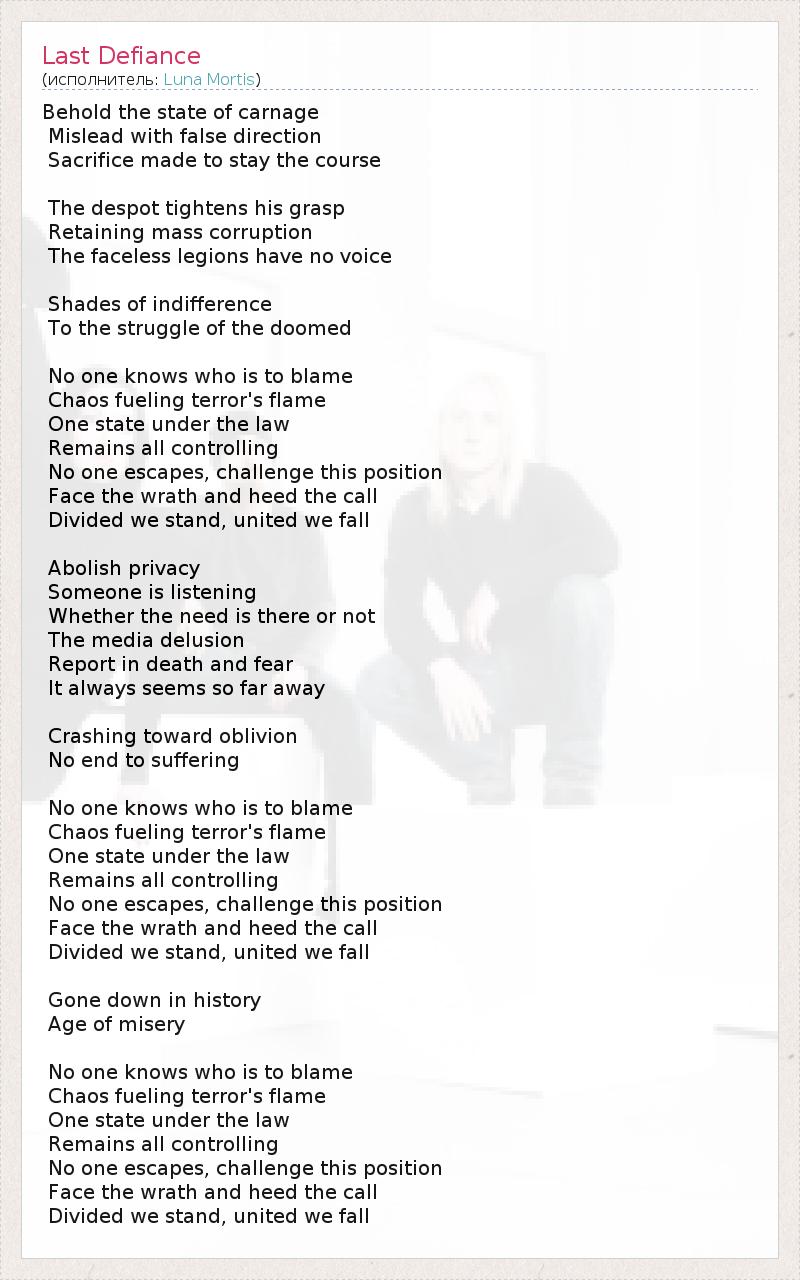 А как ты думаешь, о чем песня "Last Defiance" ?