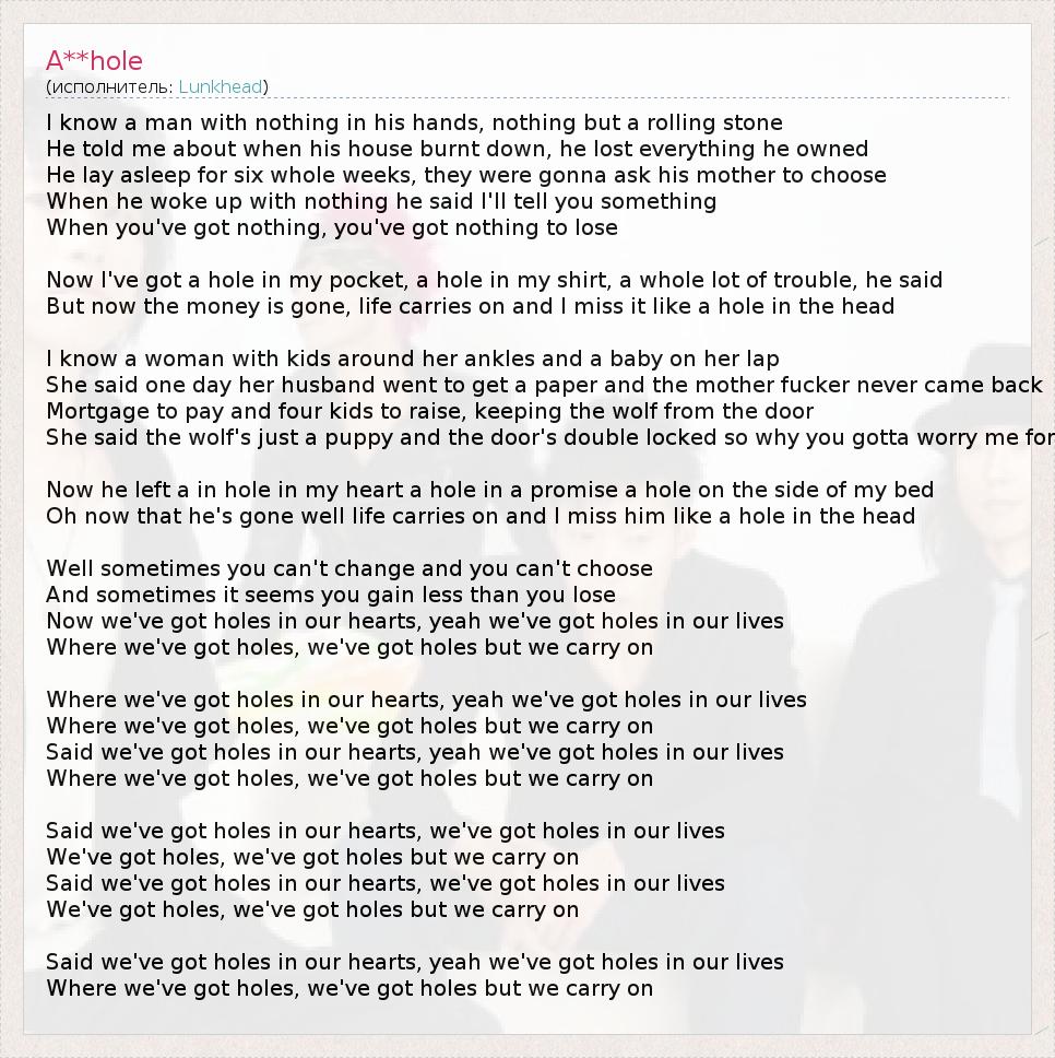 Now he left a in hole in my heart a hole in a promise a hole on the side of my bed