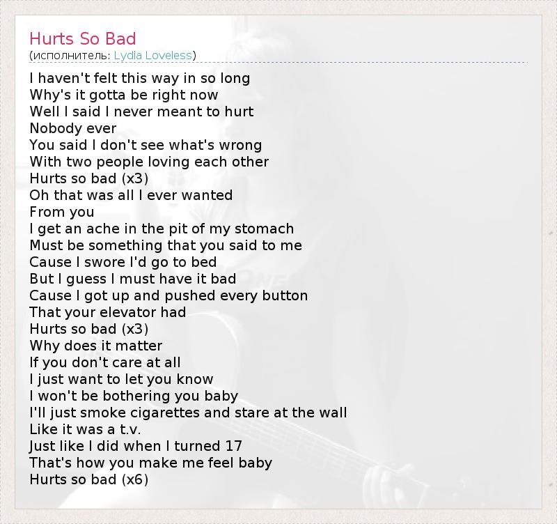 А как ты думаешь, о чем песня "Hurts So Bad" ?