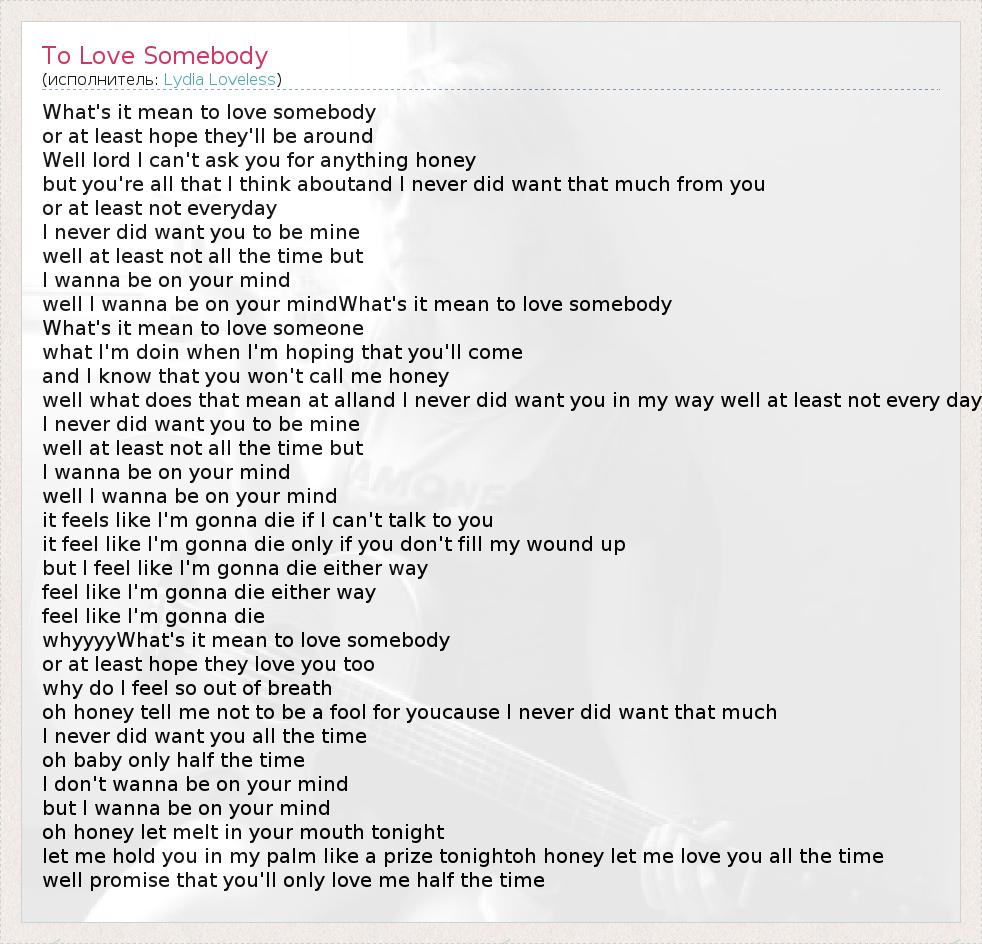 А как ты думаешь, о чем песня "To Love Somebody" ?