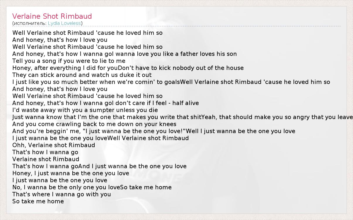 I just wanna be the one you loveWell Verlaine shot Rimbaud