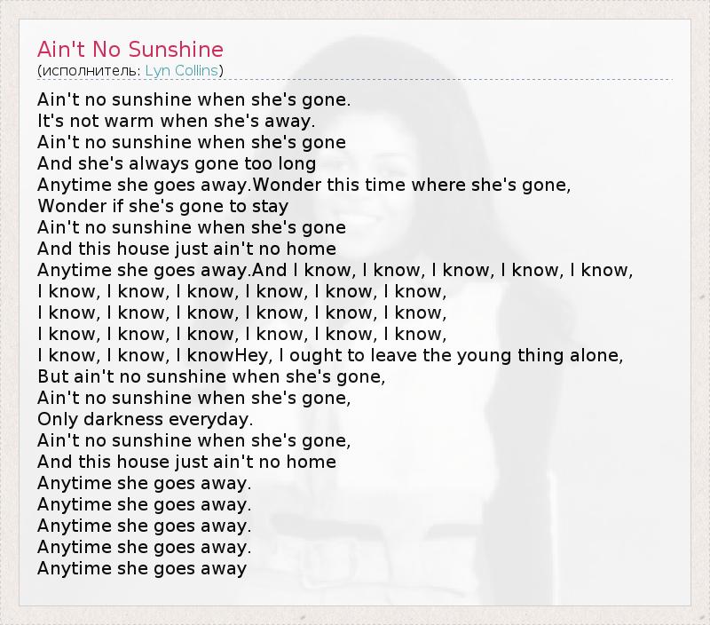 А как ты думаешь, о чем песня "Ain't No Sunshine" ?