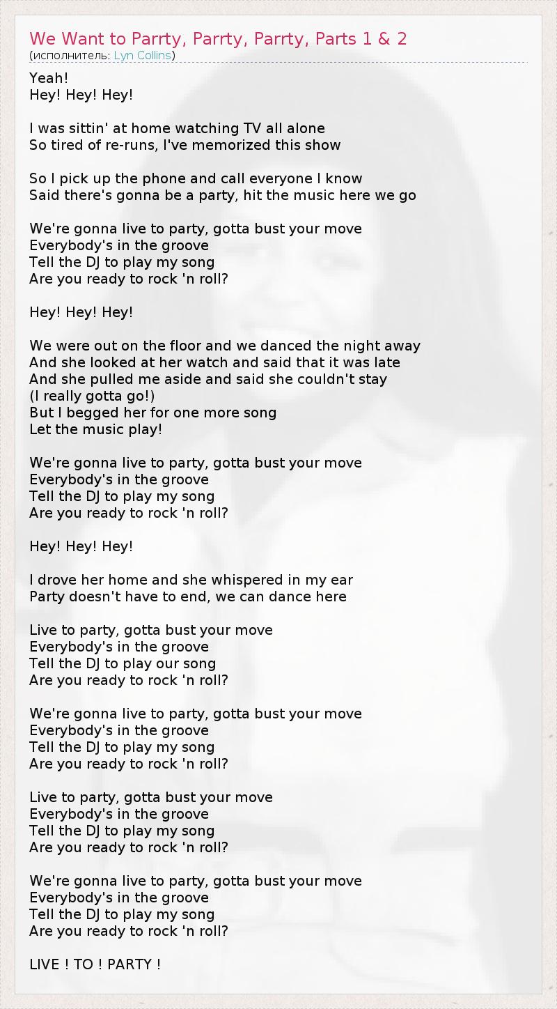 ГлавнаяИсполнителиLyn CollinsWe Want to Parrty, Parrty, Parrty, Parts 1 & 2