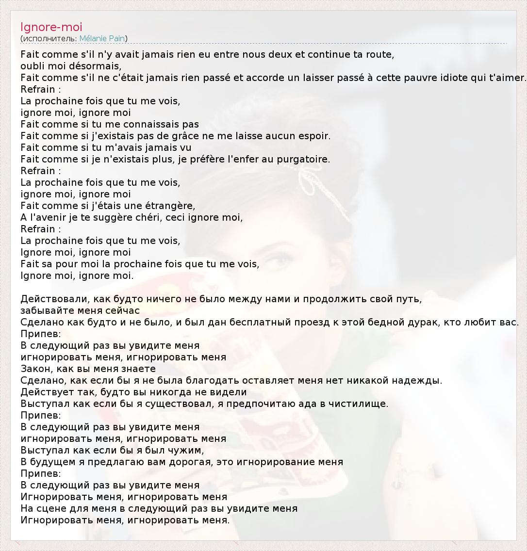 А как ты думаешь, о чем песня "Ignore-moi" ?