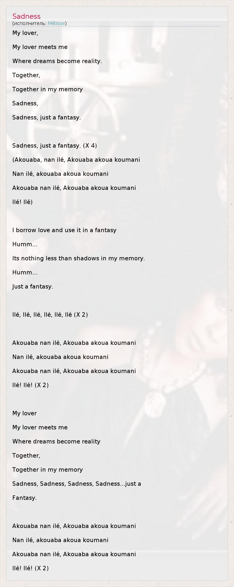 Это интересно:Métisse – группа, сформированная Skully (бывшим членом группы Chapterhouse) и певицей Aida из Кот-д'Ивуара. Их музыка – микс африканской, кельтской музыки, соула и электроники. Первый успех группа достигла синглом "Sousounde", а хит "Boom Boom Ba" стал заглавной песней к фильму "The Next Best Thing" («Лучший друг») с Мадонной. Также он является одним из саундтреков сериала "Dead Like Me" (Мертвые, как я).... продолжение