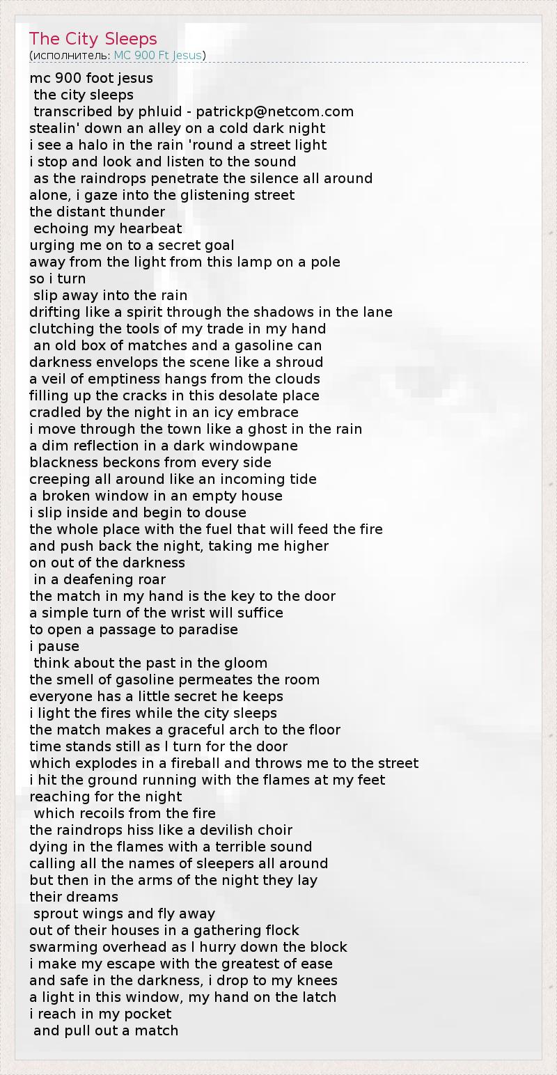 А как ты думаешь, о чем песня "The City Sleeps" ?