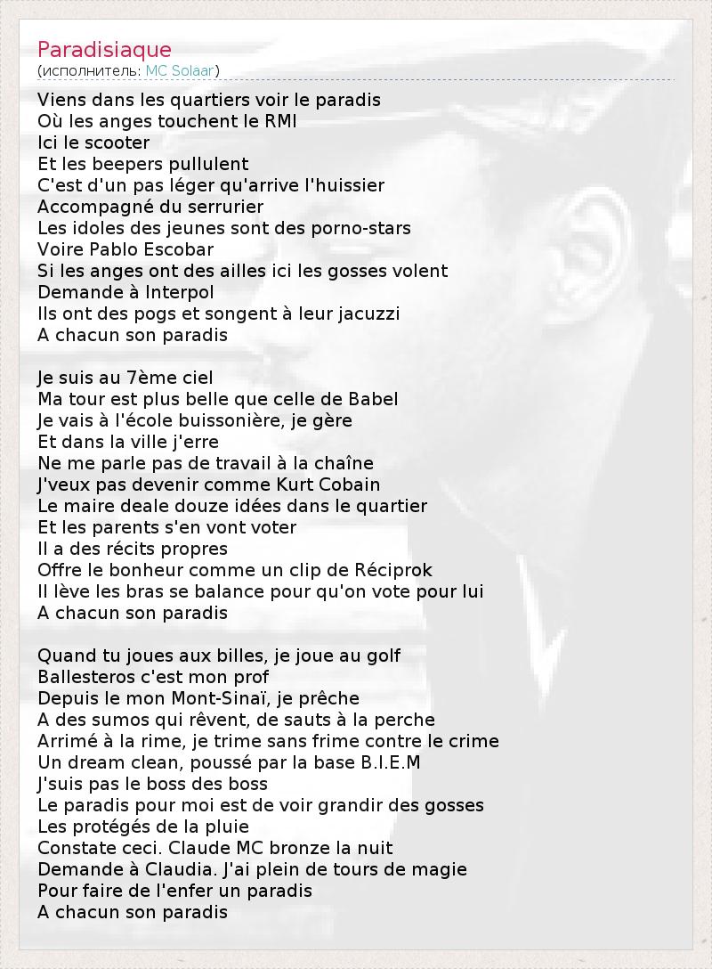 А как ты думаешь, о чем песня "Paradisiaque" ?
