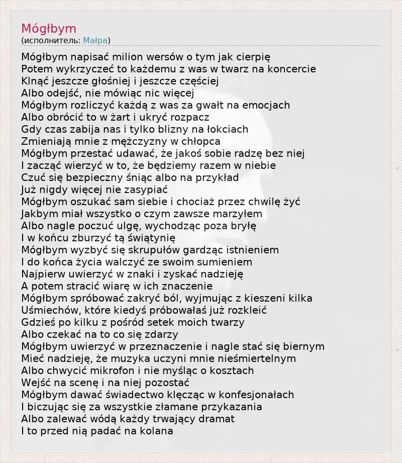 А как ты думаешь, о чем песня "Mógłbym" ?