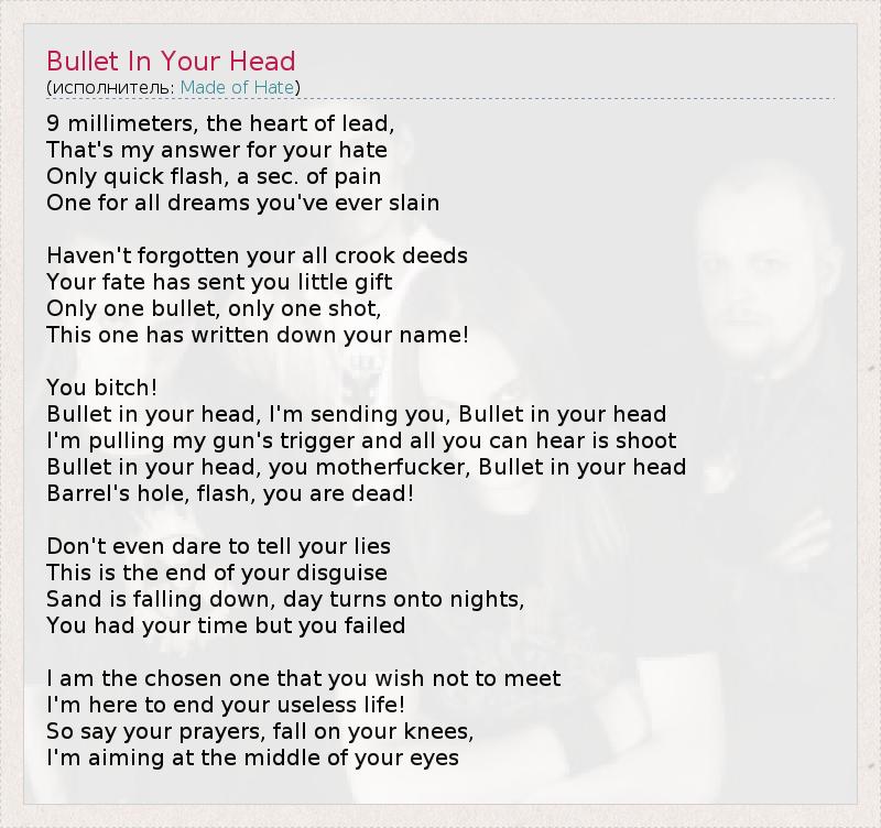 А как ты думаешь, о чем песня "Bullet In Your Head" ?