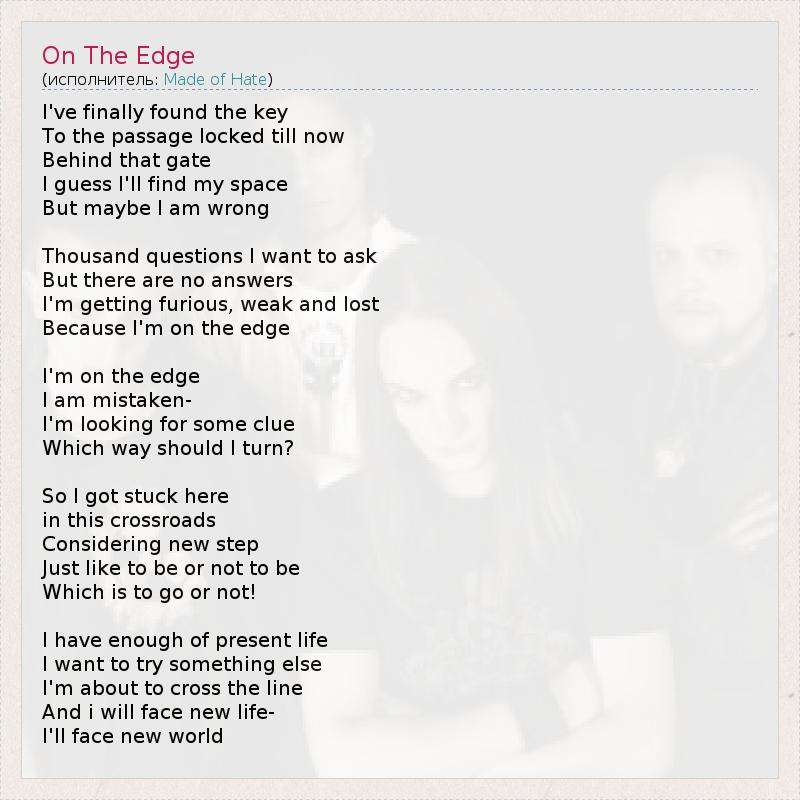 А как ты думаешь, о чем песня "On The Edge" ?