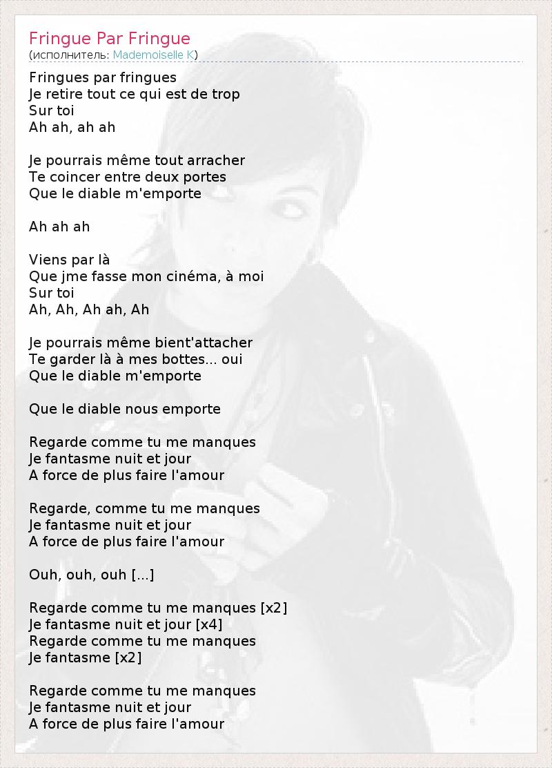 А как ты думаешь, о чем песня "Fringue Par Fringue" ?