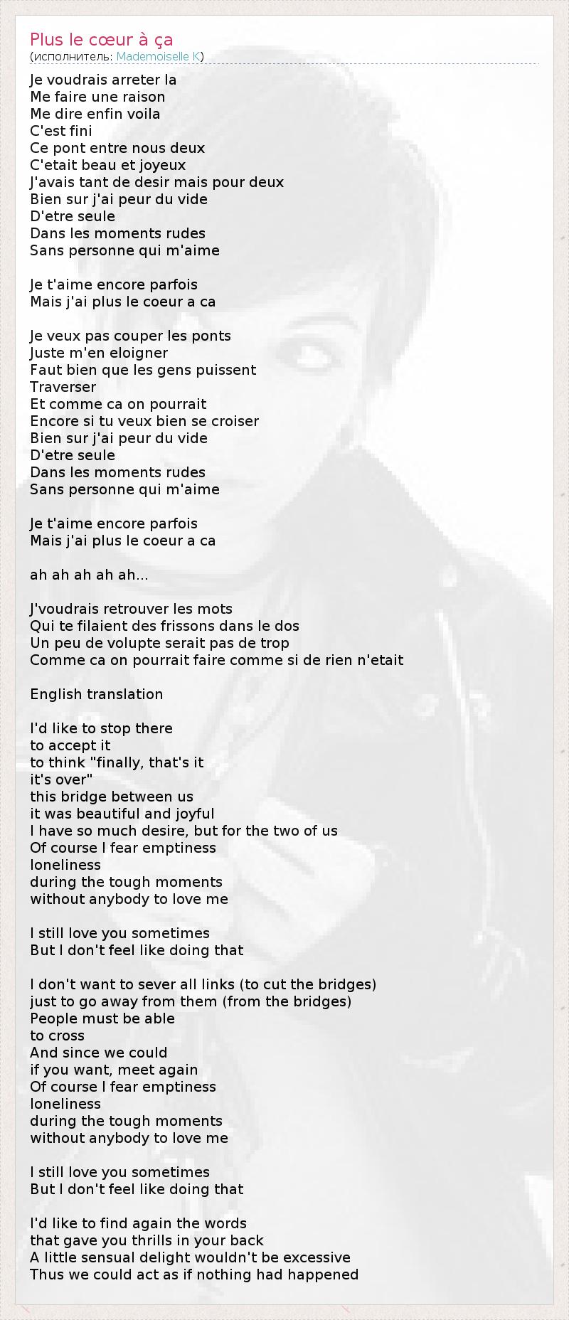 А как ты думаешь, о чем песня "Plus le cœur à ça" ?
