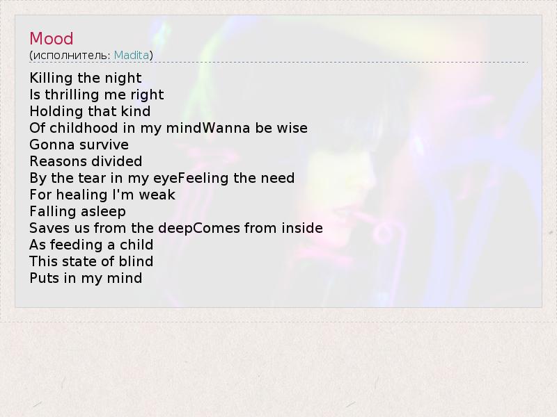 Это интересно:Впервые голос Мадиты прозвучал в одной из песен европейского проекта dZihan and Kamien, джазовых эстетов и мультиинструменталистов. Владо Дзихан однажды пригласил на запись свою подругу Эдиту Маловчич. Красивый голос и необычная манера исполнения - всё это понравилось партнерам, и уже в 2006 их совместный лейбл выпускает полноценный альбом молодой австрийской певицы-композиторши- Madita,... продолжение