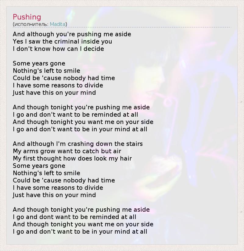 А как ты думаешь, о чем песня "Pushing" ?