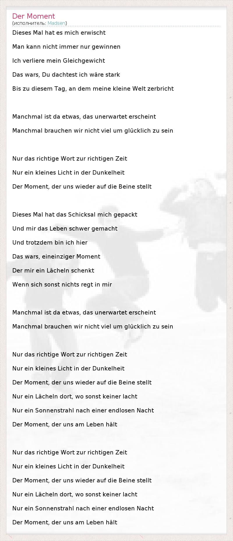 Это интересно:Madsen is a German rock band that hails from Priesseck, a section of Clenze in the Wendland. Three of the members are brothers with the surname Madsen, hence the band's name.Their music combines elements of pop, rock, and punk together with lyrics in German. They released their self-titled debut album in 2005 and reached #23 on the German music charts. In 2006, they released their second album, Goodbye Logik. Their third album, Frieden im Krieg, was released in 2008.The Madsen brothers began playing music at an early age. Towards the end of the 1990s, they had already been in two bands: Alice's Gun and Hoerstuatz. One group based itself upon the Hard rock genre, while the other... продолжение