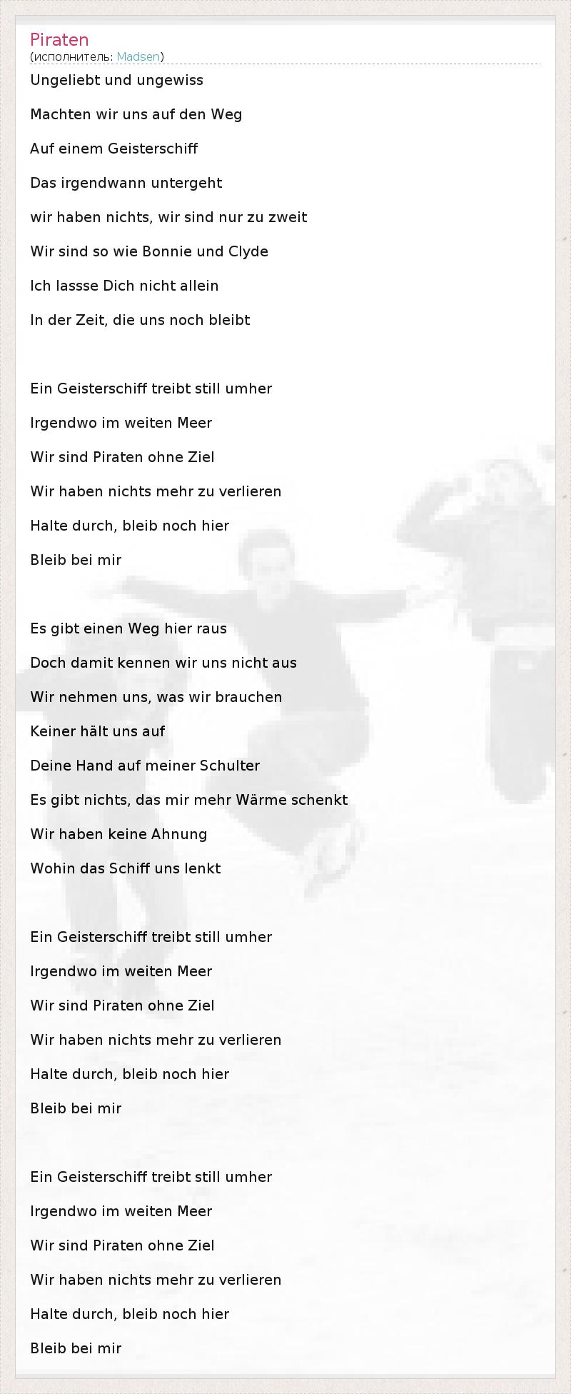 А как ты думаешь, о чем песня "Piraten" ?