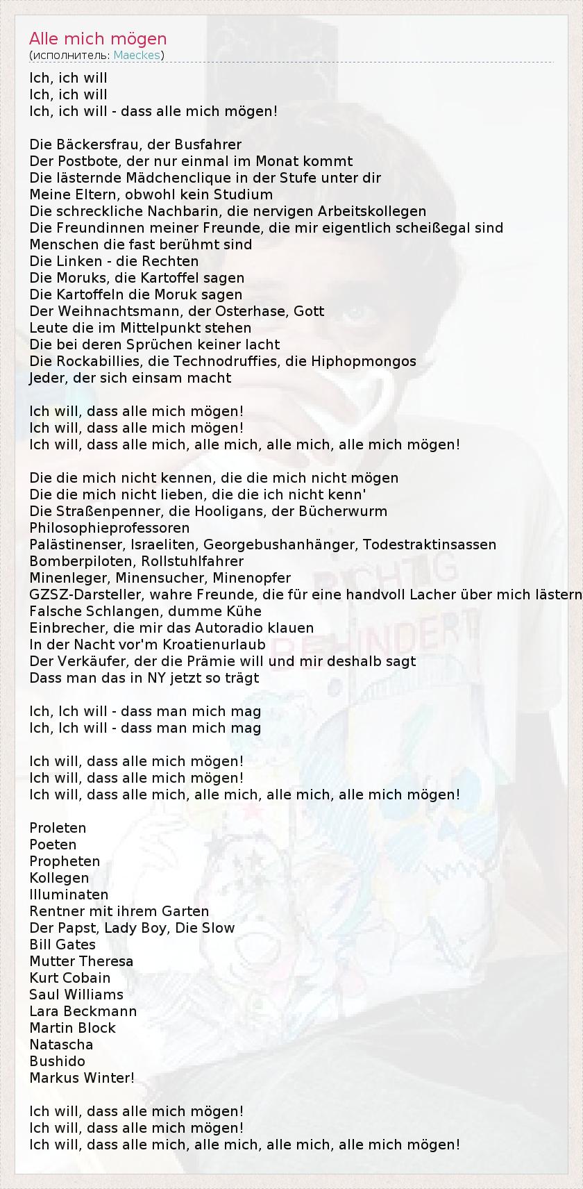 А как ты думаешь, о чем песня "Alle mich mögen" ?