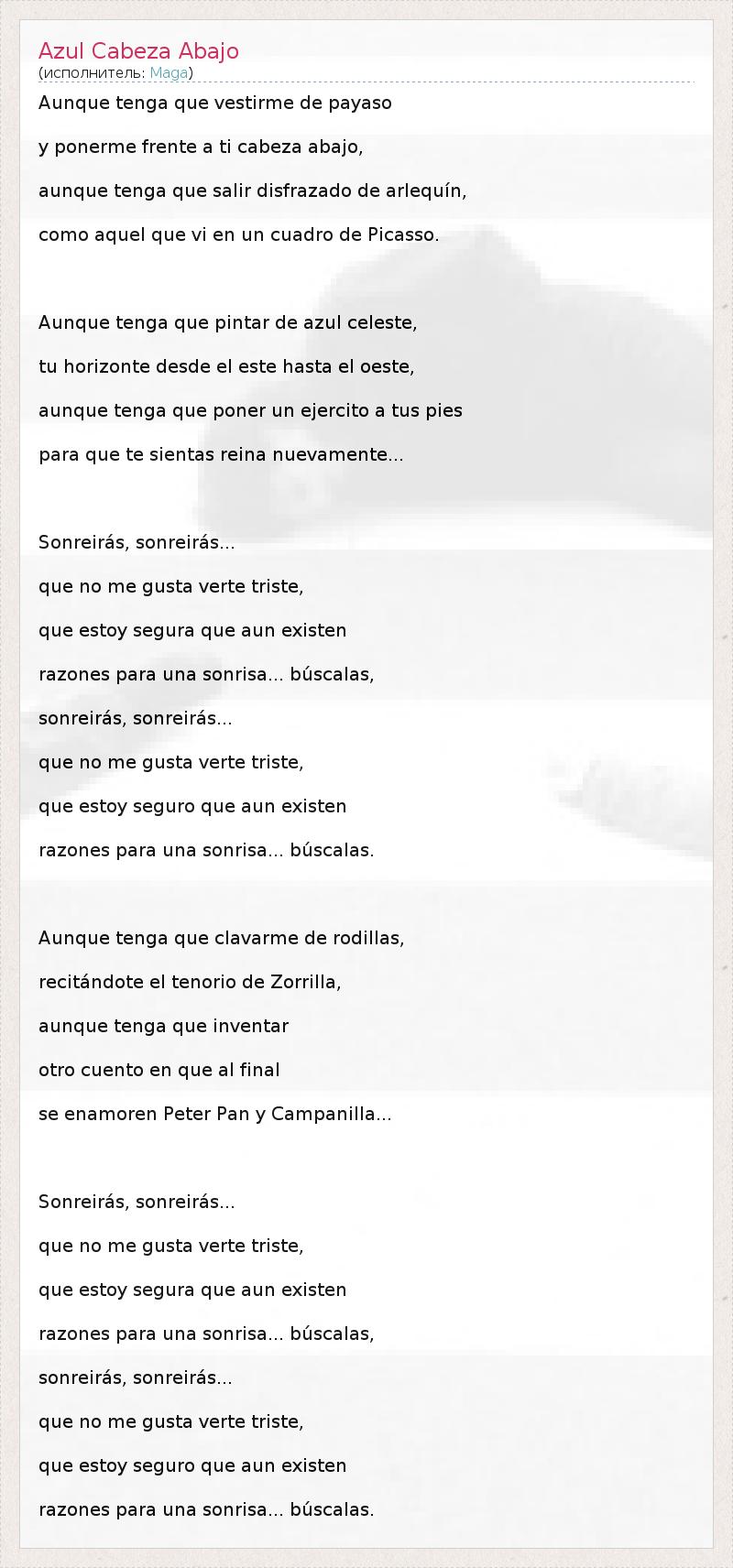 А как ты думаешь, о чем песня "Azul Cabeza Abajo" ?