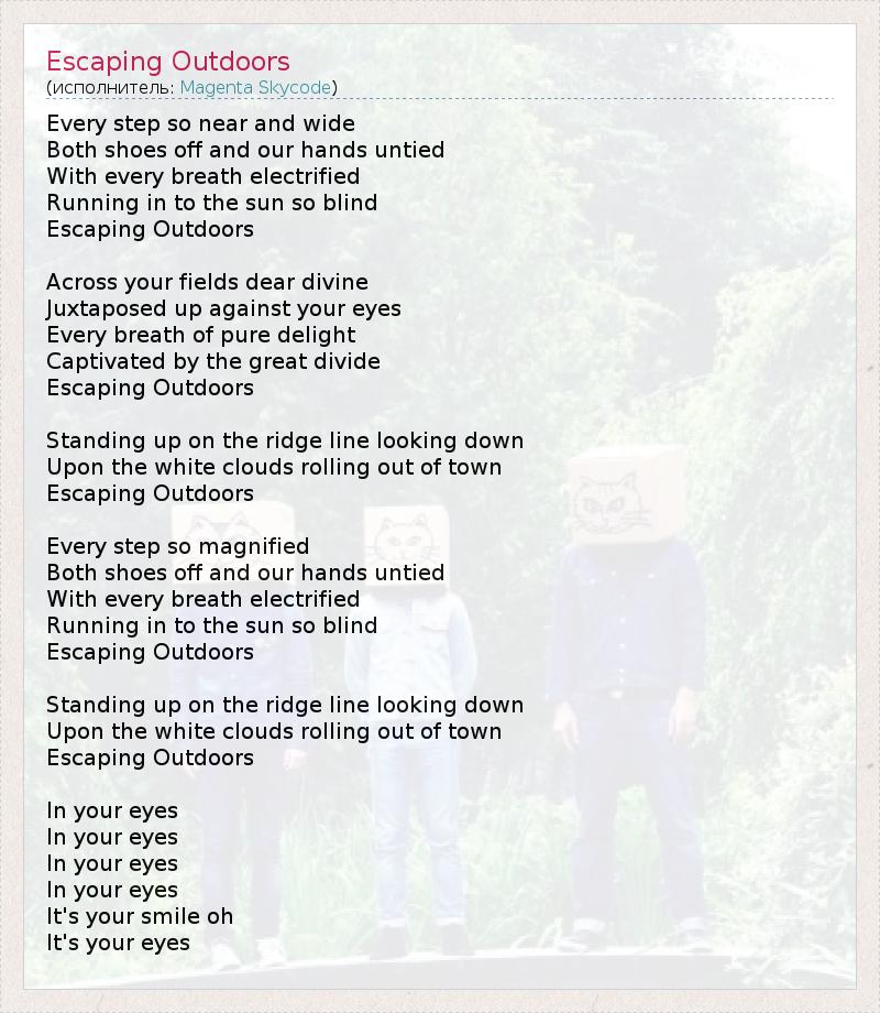 А как ты думаешь, о чем песня "Escaping Outdoors" ?