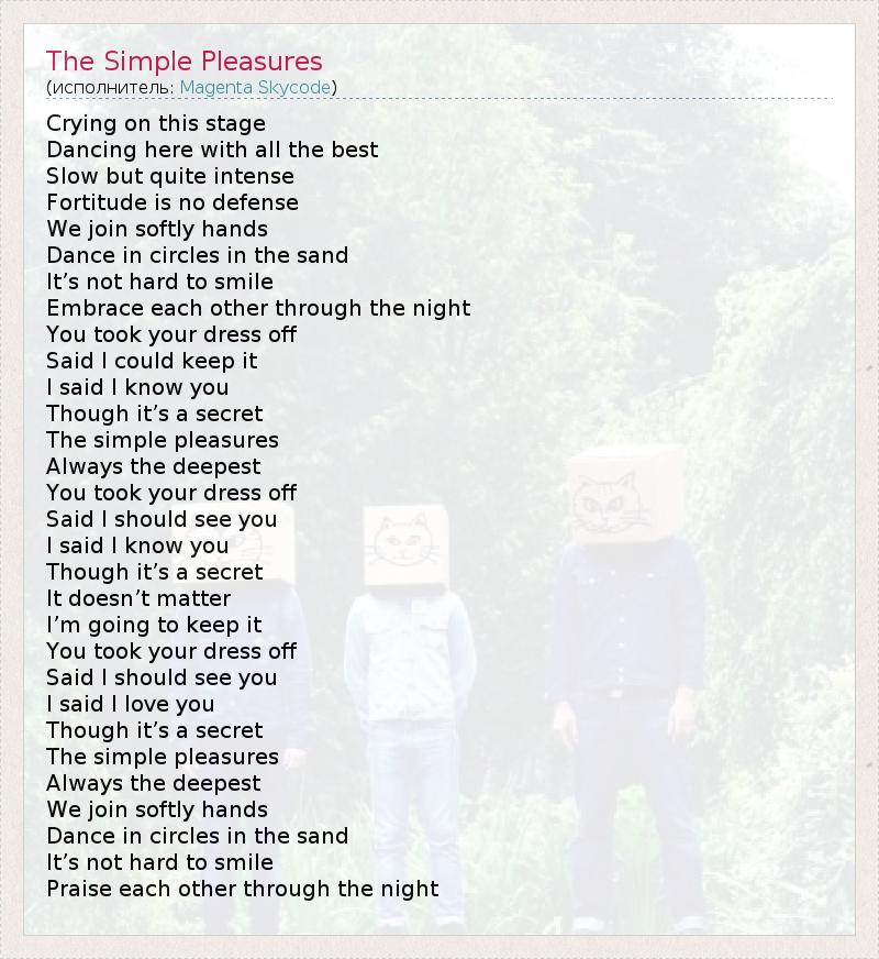 А как ты думаешь, о чем песня "The Simple Pleasures" ?