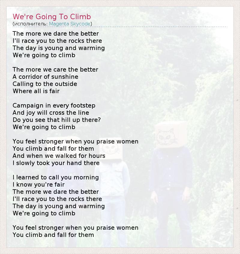 А как ты думаешь, о чем песня "We're Going To Climb" ?