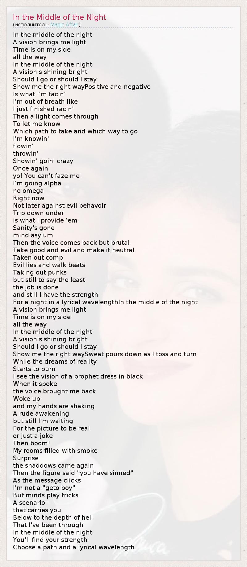 ГлавнаяИсполнителиMagic AffairIn the Middle of the Night