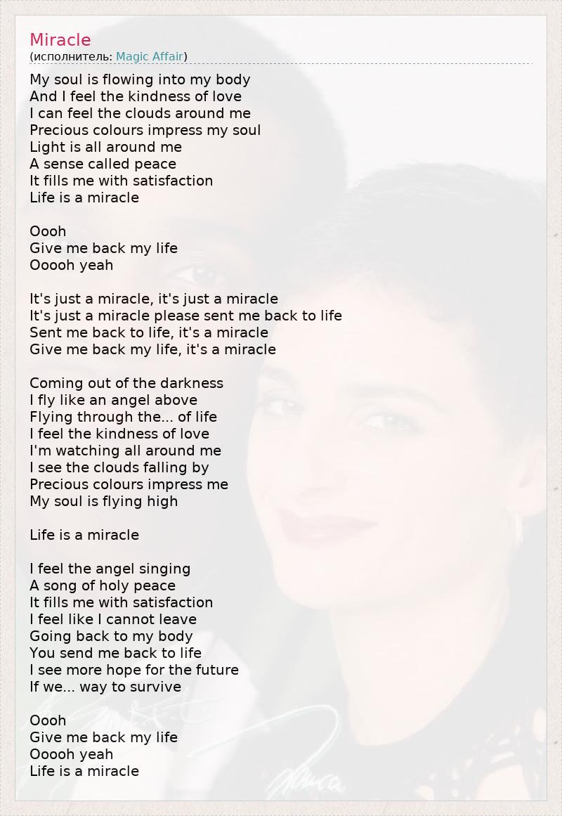 It's just a miracle please sent me back to life