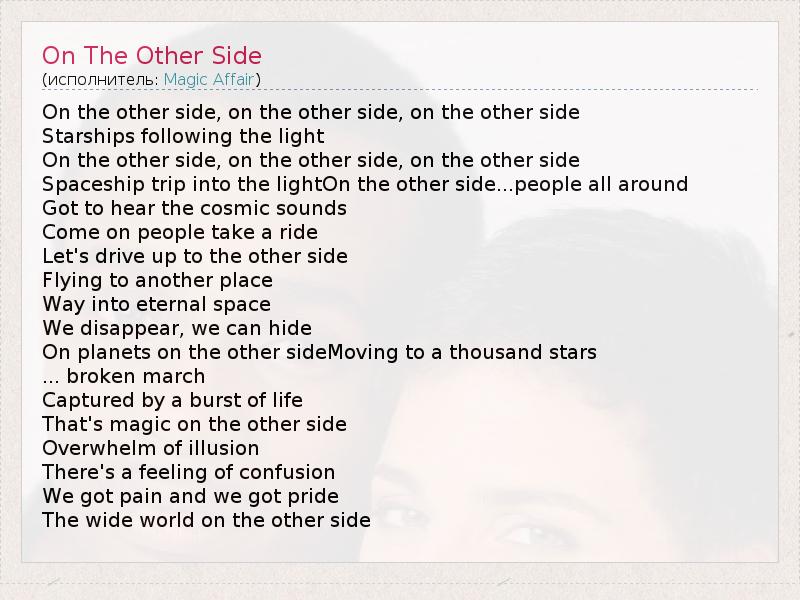 А как ты думаешь, о чем песня "On The Other Side" ?