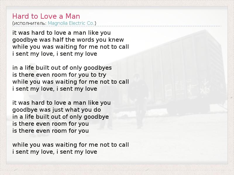 А как ты думаешь, о чем песня "Hard to Love a Man" ?