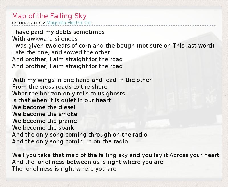 А как ты думаешь, о чем песня "Map of the Falling Sky" ?