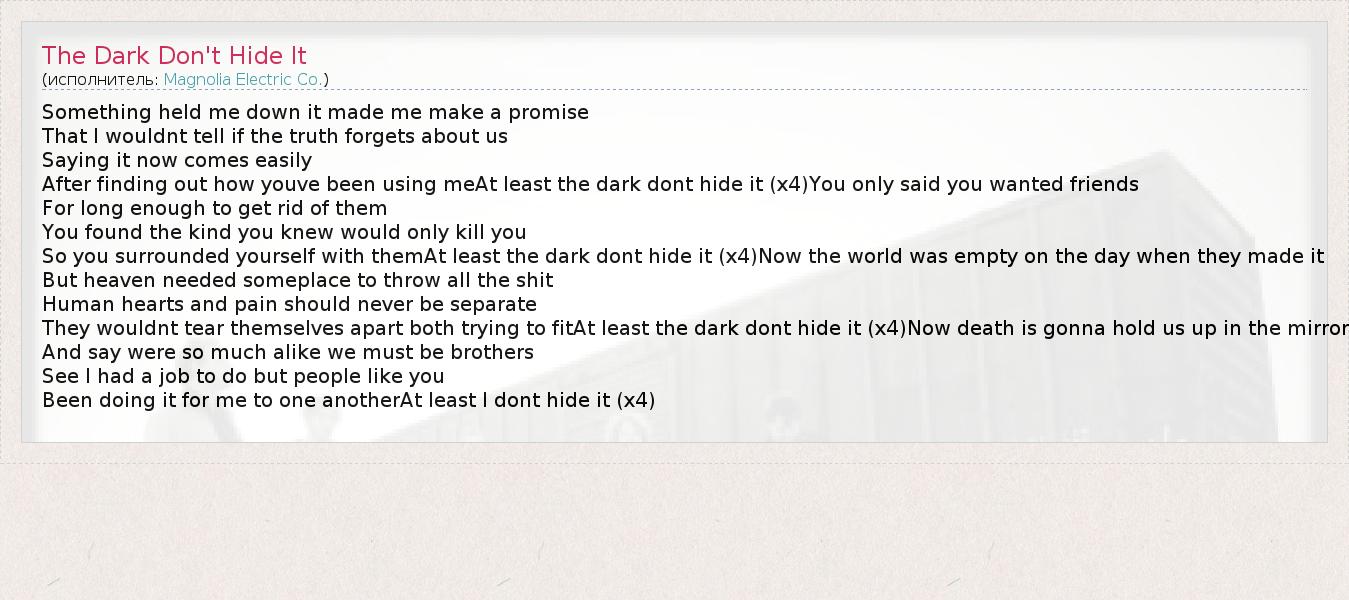 А как ты думаешь, о чем песня "The Dark Don't Hide It" ?
