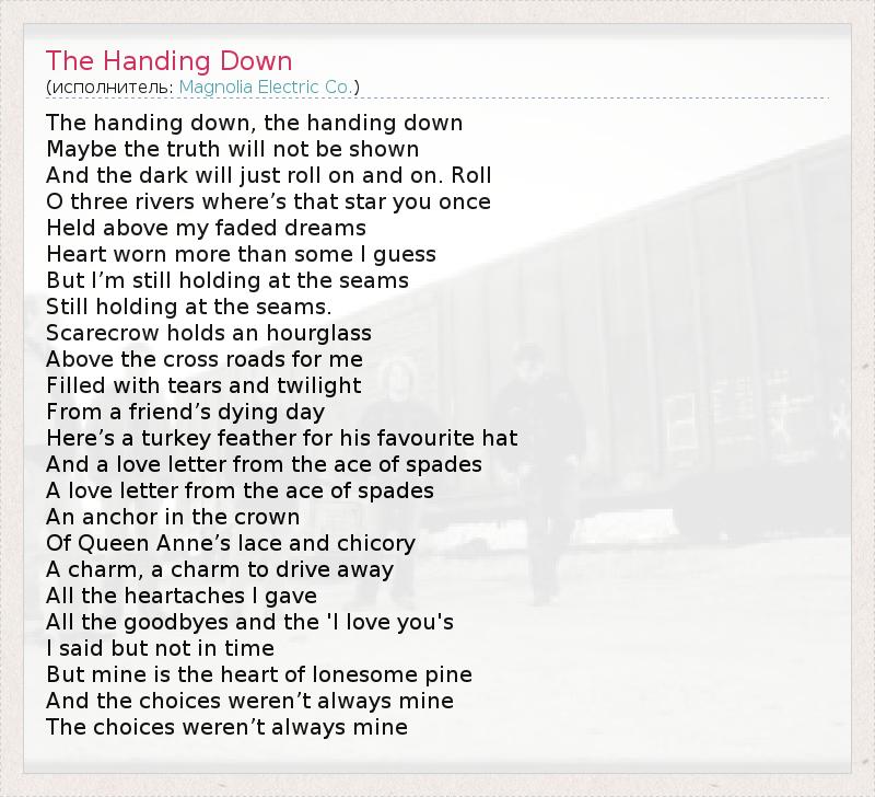 А как ты думаешь, о чем песня "The Handing Down" ?