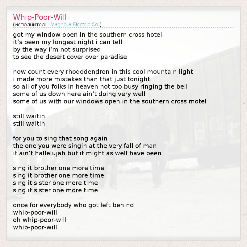 А как ты думаешь, о чем песня "Whip-Poor-Will" ?
