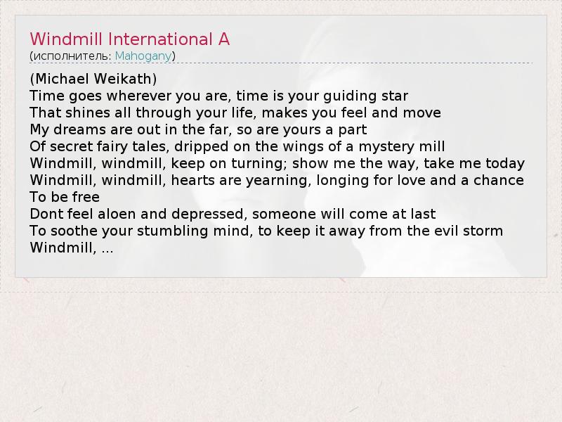 А как ты думаешь, о чем песня "Windmill International A" ?