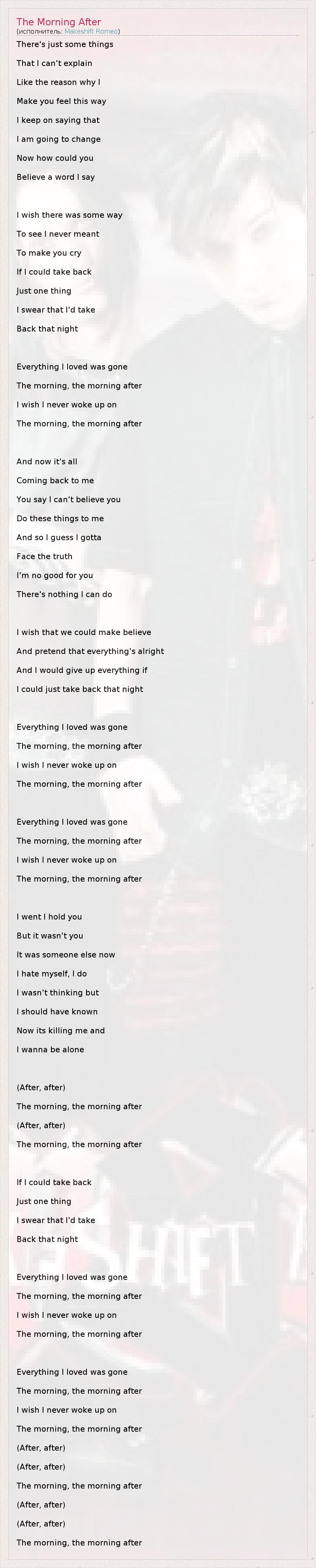 А как ты думаешь, о чем песня "The Morning After" ?