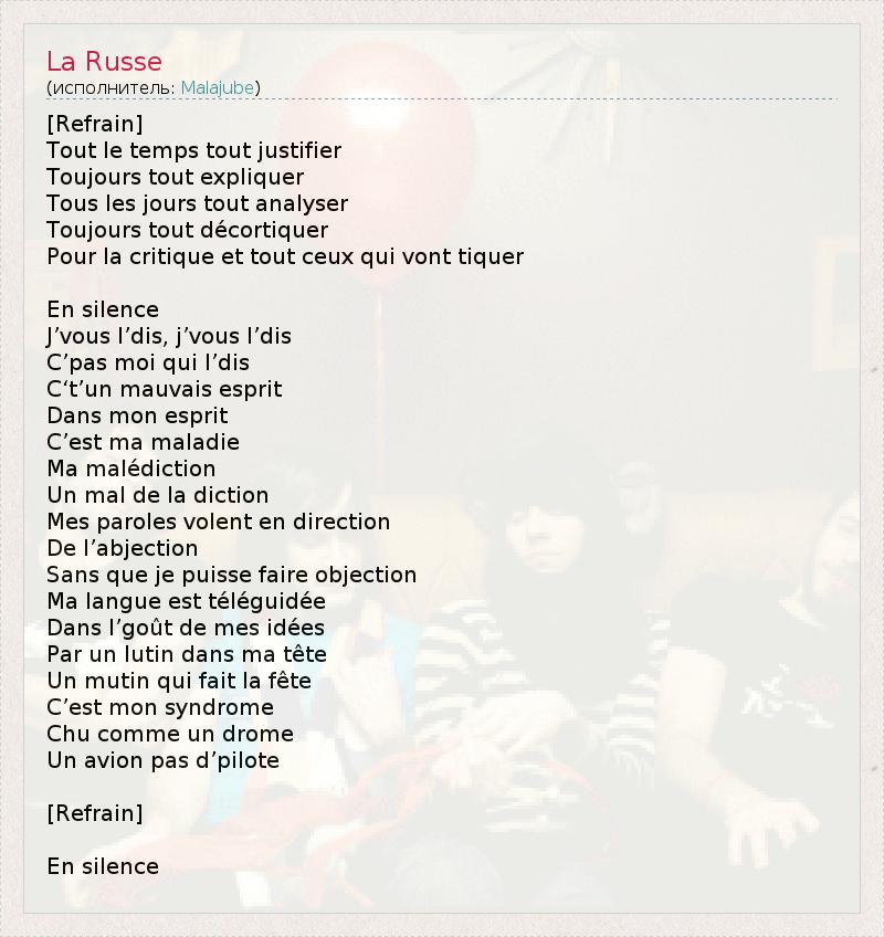 А как ты думаешь, о чем песня "La Russe" ?
