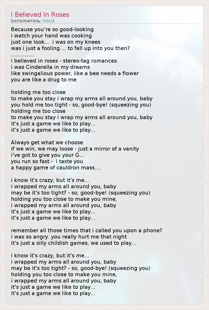 А как ты думаешь, о чем песня "I Believed In Roses" ?