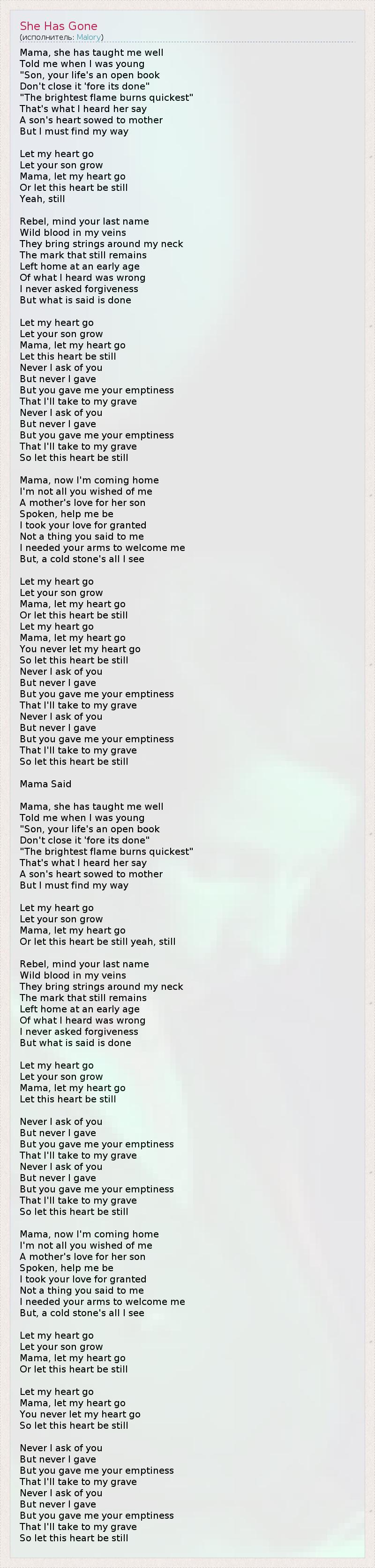 А как ты думаешь, о чем песня "She Has Gone" ?