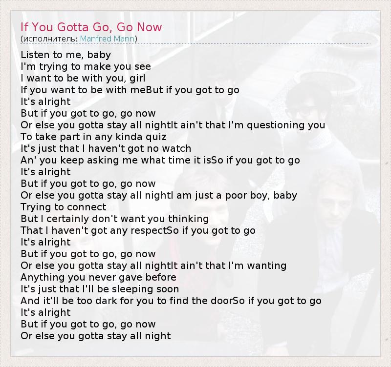 А как ты думаешь, о чем песня "If You Gotta Go, Go Now" ?