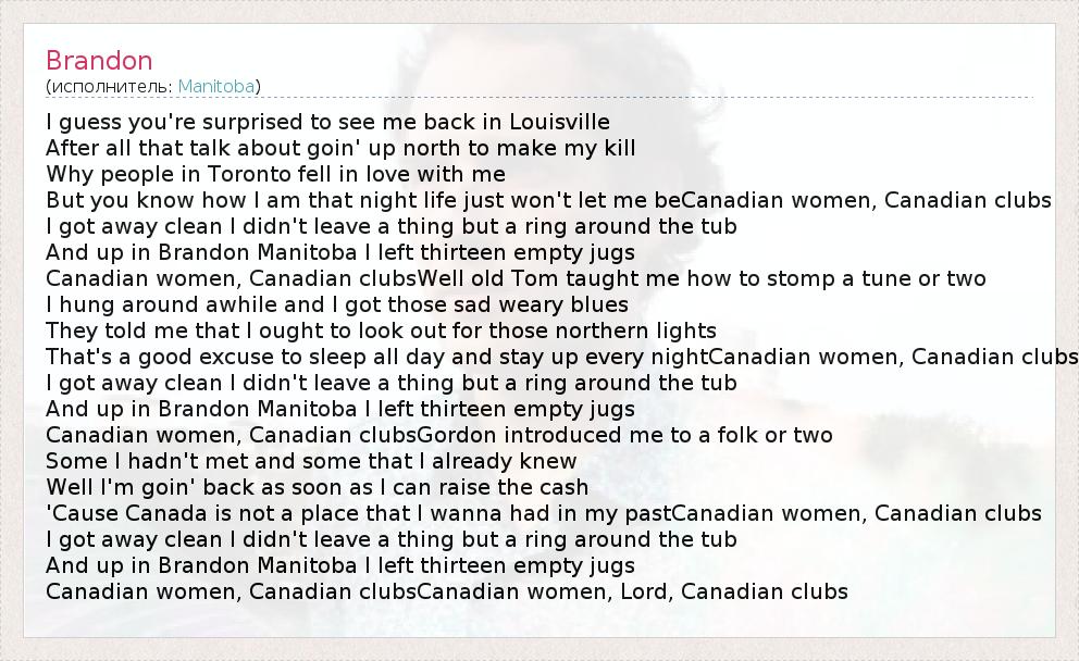 А как ты думаешь, о чем песня "Brandon" ?