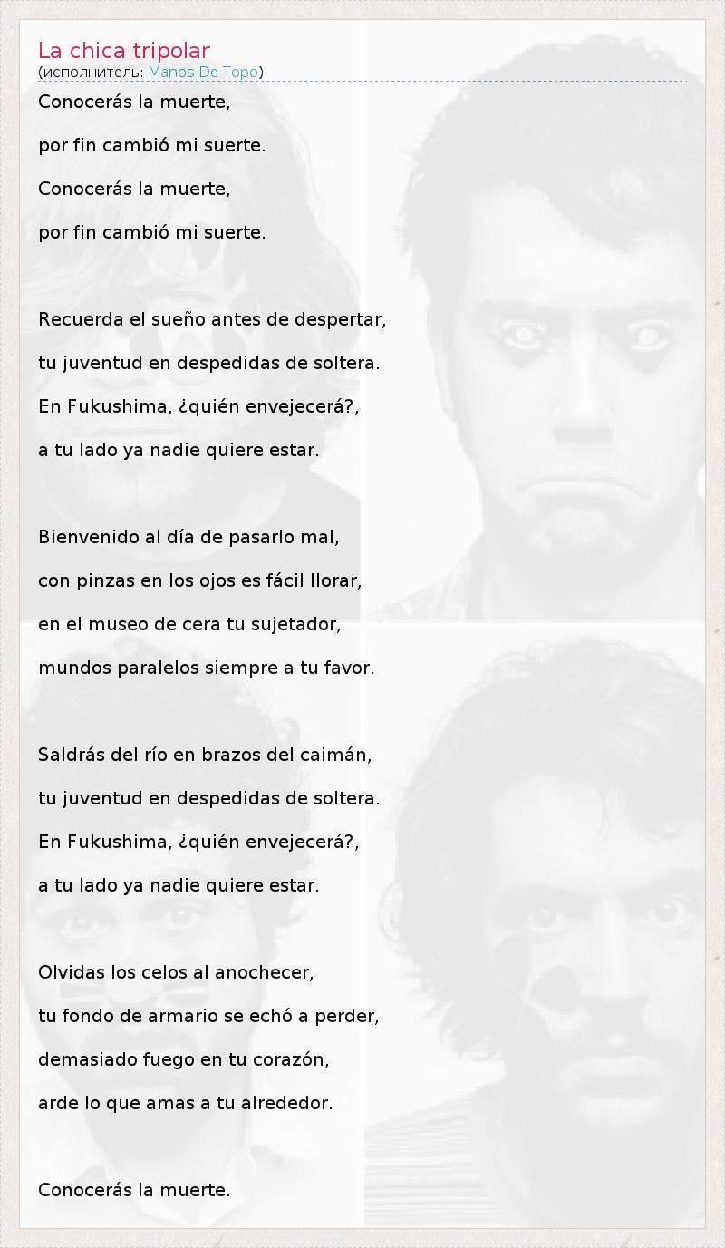 А как ты думаешь, о чем песня "La chica tripolar" ?