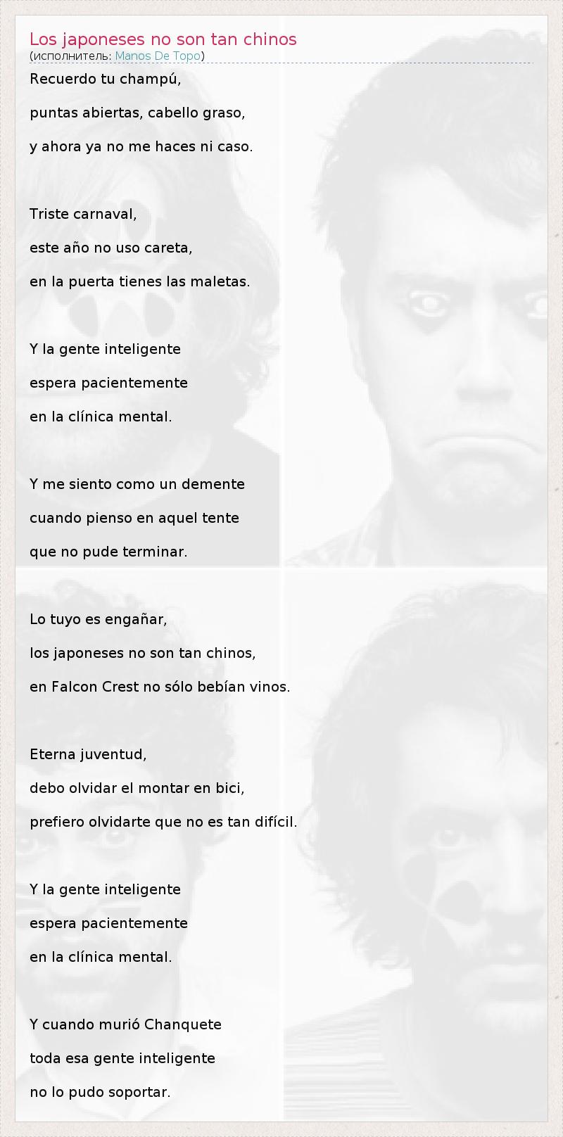 А как ты думаешь, о чем песня "Los japoneses no son tan chinos" ?